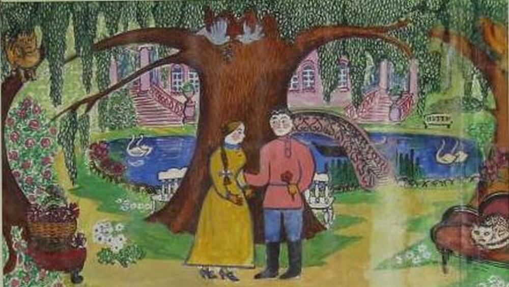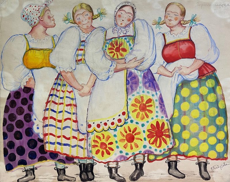 Эскиз костюма Матрёны в одежде Курослепова к спектаклю «Горячее сердце» Казанского Большого драматического театра им. В. И. Качалова. 1943 г. Художник Г. М. Неменова. Из фондов Музея изобразительных искусств Республики Татарстан.