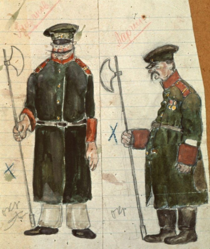 Эскиз костюма Сидоренко к спектаклю «Горячее сердце» МХАТа. 1926 г. Художник Н. П. Крымов. Из фондов Музея МХАТа.