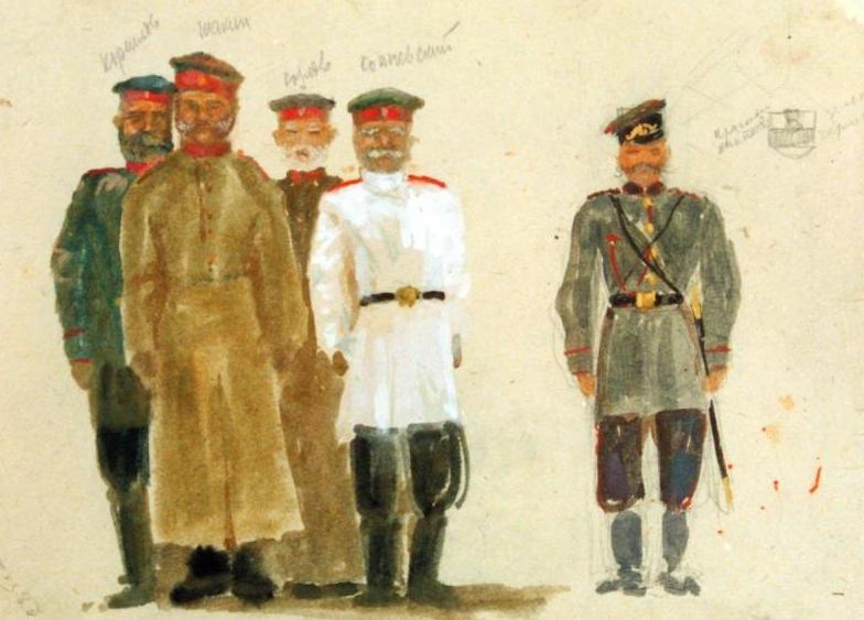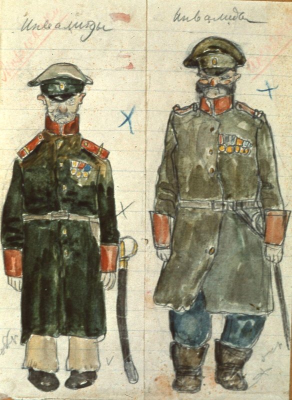 Эскиз костюма Солдата к спектаклю «Горячее сердце» МХАТа. 1926 г. Художник Н. П. Крымов. Из фондов Музея МХАТа.