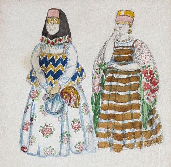 Эскиз костюма Матрёны к спектаклю «Горячее сердце» Ленинградского театра драмы им. А. С. Пушкина. 1973 г. Художник М. Ц. Азизян. Из фондов СПбГМТМИ.